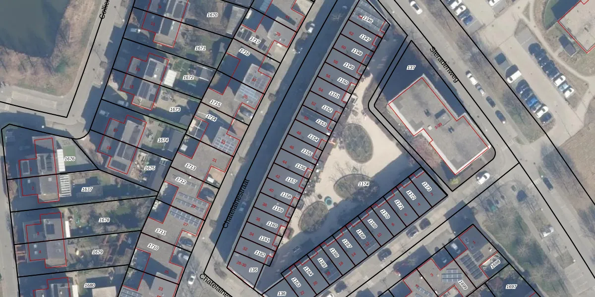 Het perceel waarop Chatelainestraat 46 staat heeft een oppervlakte van 70 m². Dit is een klein perceel. De perceeloppervlakte wordt geregistreerd door het Kadaster. Gedetailleerde informatie over de maten van dit perceel kunt u vinden in het rapport Kadastrale kaart met maatvoering van Chatelainestraat 46.