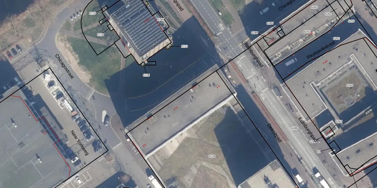 Het perceel waarop Chicagostraat 42 staat heeft een oppervlakte van 5015 m². Dit is een zeer groot perceel. De perceeloppervlakte wordt geregistreerd door het Kadaster. Gedetailleerde informatie over de maten van dit perceel kunt u vinden in het rapport Kadastrale kaart met maatvoering van Chicagostraat 42.