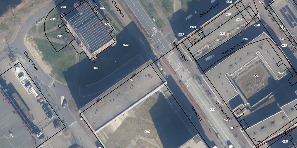 Het perceel waarop Chicagostraat 54 staat heeft een oppervlakte van 5015 m². Dit is een zeer groot perceel. De perceeloppervlakte wordt geregistreerd door het Kadaster. Gedetailleerde informatie over de maten van dit perceel kunt u vinden in het rapport Kadastrale kaart met maatvoering van Chicagostraat 54.
