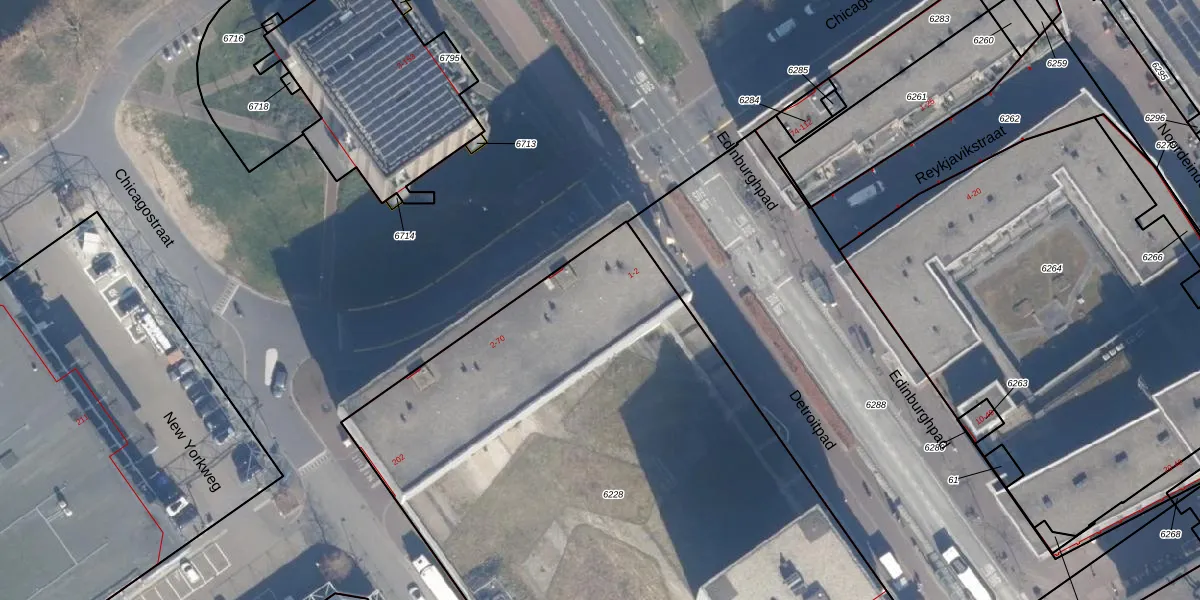 Het perceel waarop Chicagostraat 60 staat heeft een oppervlakte van 5015 m². Dit is een zeer groot perceel. De perceeloppervlakte wordt geregistreerd door het Kadaster. Gedetailleerde informatie over de maten van dit perceel kunt u vinden in het rapport Kadastrale kaart met maatvoering van Chicagostraat 60.