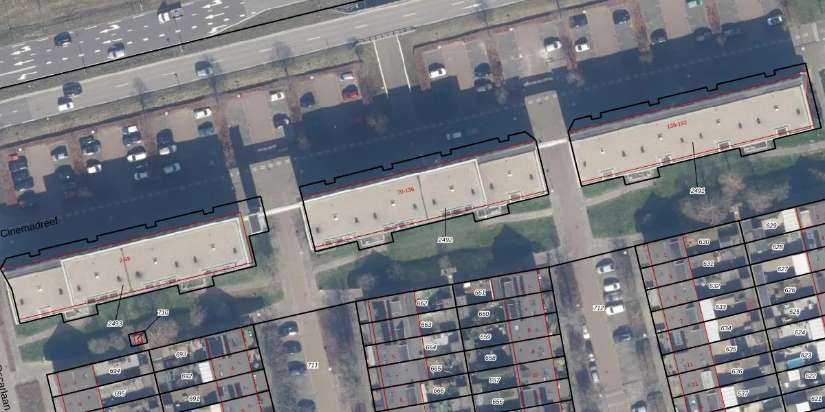 Het perceel waarop Cinemadreef 100 staat heeft een oppervlakte van 968 m². Dit is een groot perceel. De perceeloppervlakte wordt geregistreerd door het Kadaster. Gedetailleerde informatie over de maten van dit perceel kunt u vinden in het rapport Kadastrale kaart met maatvoering van Cinemadreef 100.