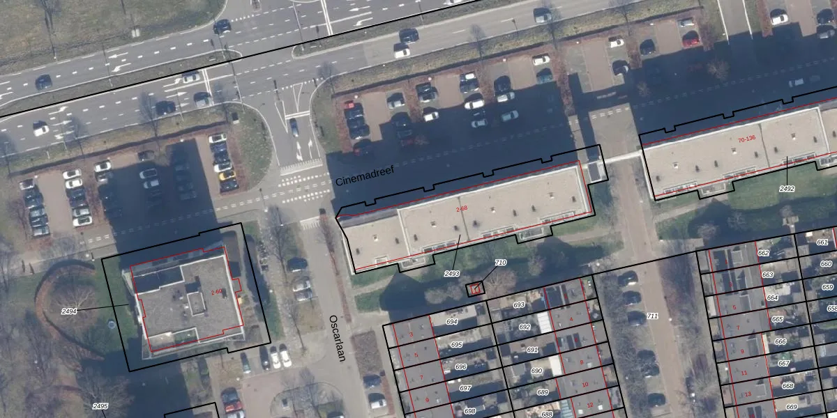 Het perceel waarop Cinemadreef 18 staat heeft een oppervlakte van 1031 m². Dit is een zeer groot perceel. De perceeloppervlakte wordt geregistreerd door het Kadaster. Gedetailleerde informatie over de maten van dit perceel kunt u vinden in het rapport Kadastrale kaart met maatvoering van Cinemadreef 18.