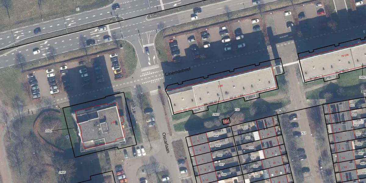 Het perceel waarop Cinemadreef 2 staat heeft een oppervlakte van 1031 m². Dit is een zeer groot perceel. De perceeloppervlakte wordt geregistreerd door het Kadaster. Gedetailleerde informatie over de maten van dit perceel kunt u vinden in het rapport Kadastrale kaart met maatvoering van Cinemadreef 2.
