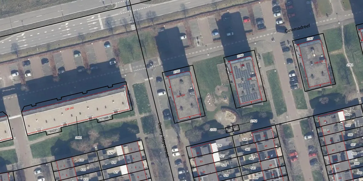 Het perceel waarop Cinemadreef 218 staat heeft een oppervlakte van 501 m². Dit is een groot perceel. De perceeloppervlakte wordt geregistreerd door het Kadaster. Gedetailleerde informatie over de maten van dit perceel kunt u vinden in het rapport Kadastrale kaart met maatvoering van Cinemadreef 218.