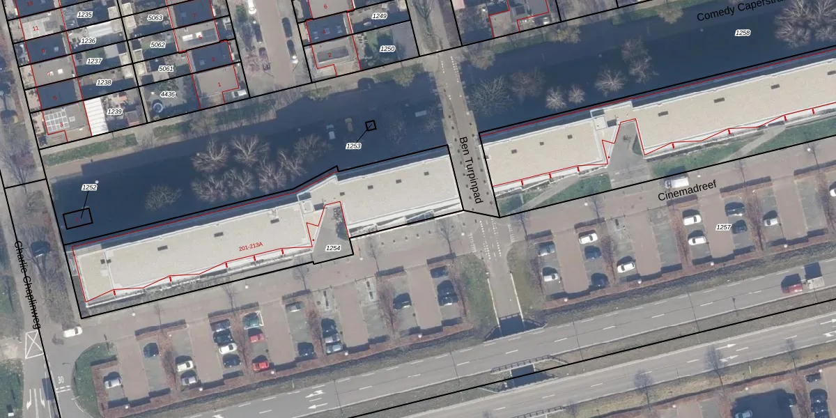 Het perceel waarop Cinemadreef 237 staat heeft een oppervlakte van 1680 m². Dit is een zeer groot perceel. De perceeloppervlakte wordt geregistreerd door het Kadaster. Gedetailleerde informatie over de maten van dit perceel kunt u vinden in het rapport Kadastrale kaart met maatvoering van Cinemadreef 237.