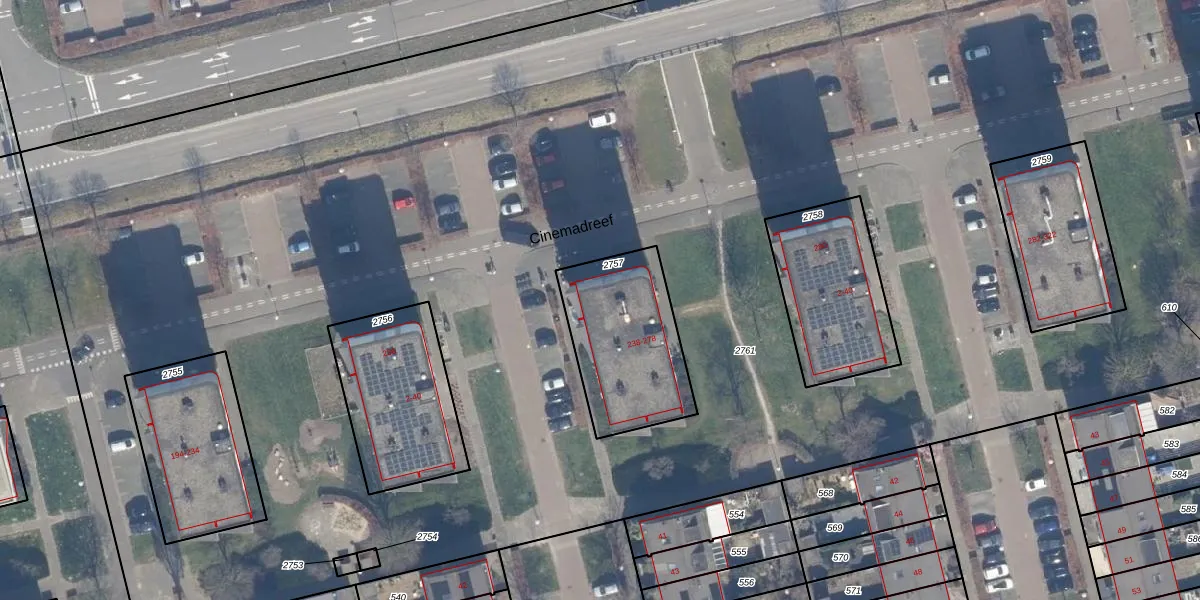 Het perceel waarop Cinemadreef 266 staat heeft een oppervlakte van 501 m². Dit is een groot perceel. De perceeloppervlakte wordt geregistreerd door het Kadaster. Gedetailleerde informatie over de maten van dit perceel kunt u vinden in het rapport Kadastrale kaart met maatvoering van Cinemadreef 266.