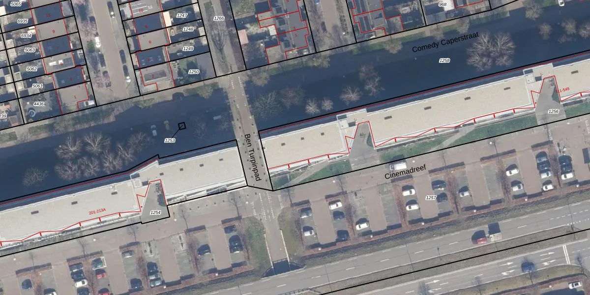 Het perceel waarop Cinemadreef 313 staat heeft een oppervlakte van 4455 m². Dit is een zeer groot perceel. De perceeloppervlakte wordt geregistreerd door het Kadaster. Gedetailleerde informatie over de maten van dit perceel kunt u vinden in het rapport Kadastrale kaart met maatvoering van Cinemadreef 313.