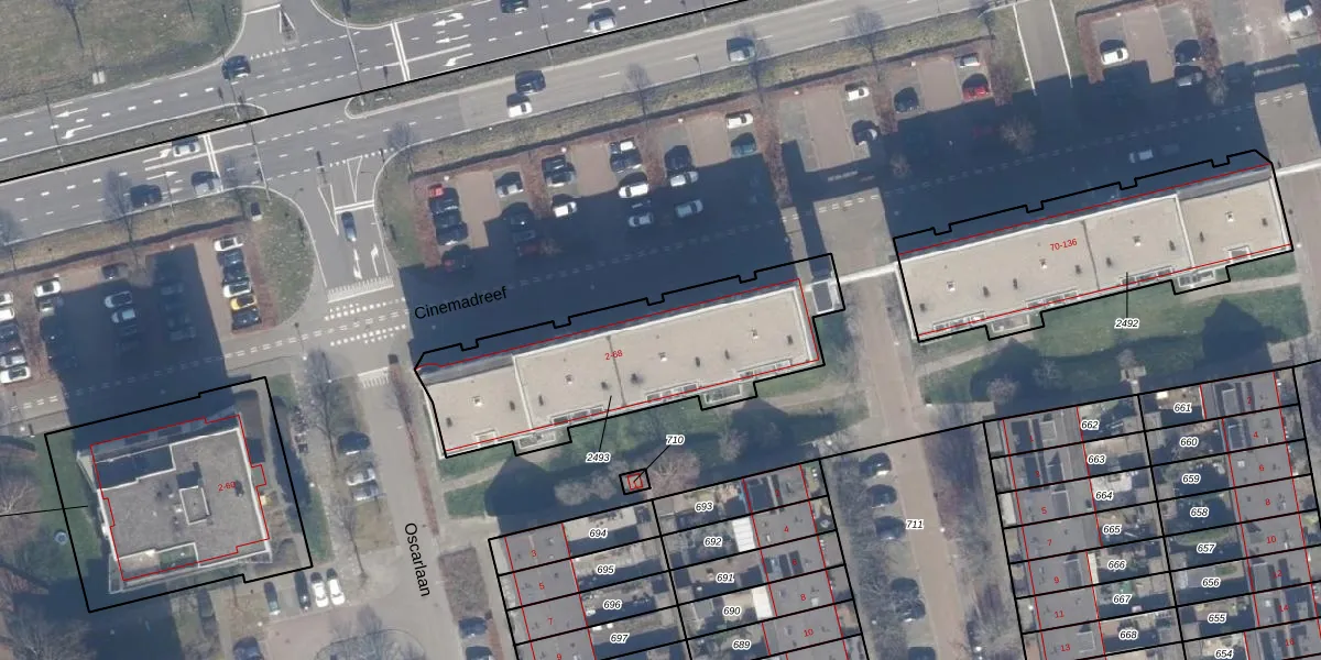 Het perceel waarop Cinemadreef 34 staat heeft een oppervlakte van 1031 m². Dit is een zeer groot perceel. De perceeloppervlakte wordt geregistreerd door het Kadaster. Gedetailleerde informatie over de maten van dit perceel kunt u vinden in het rapport Kadastrale kaart met maatvoering van Cinemadreef 34.