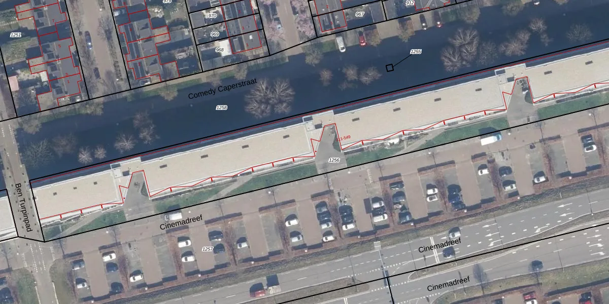 Het perceel waarop Cinemadreef 401 staat heeft een oppervlakte van 4455 m². Dit is een zeer groot perceel. De perceeloppervlakte wordt geregistreerd door het Kadaster. Gedetailleerde informatie over de maten van dit perceel kunt u vinden in het rapport Kadastrale kaart met maatvoering van Cinemadreef 401.