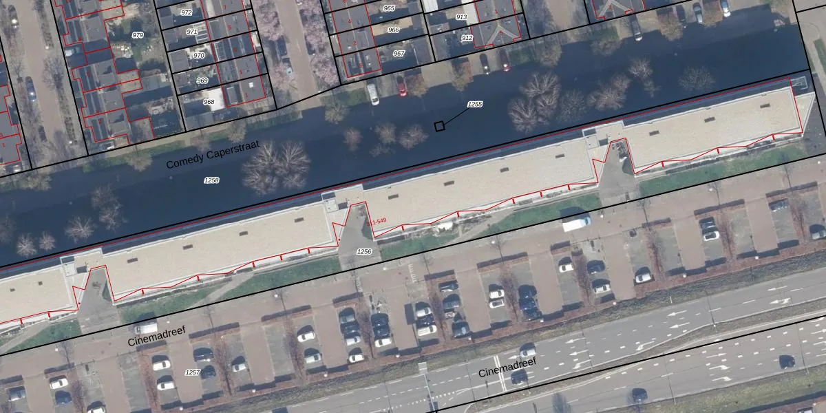 Het perceel waarop Cinemadreef 421 staat heeft een oppervlakte van 4455 m². Dit is een zeer groot perceel. De perceeloppervlakte wordt geregistreerd door het Kadaster. Gedetailleerde informatie over de maten van dit perceel kunt u vinden in het rapport Kadastrale kaart met maatvoering van Cinemadreef 421.