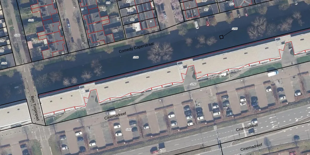 Het perceel waarop Cinemadreef 429 staat heeft een oppervlakte van 4455 m². Dit is een zeer groot perceel. De perceeloppervlakte wordt geregistreerd door het Kadaster. Gedetailleerde informatie over de maten van dit perceel kunt u vinden in het rapport Kadastrale kaart met maatvoering van Cinemadreef 429.
