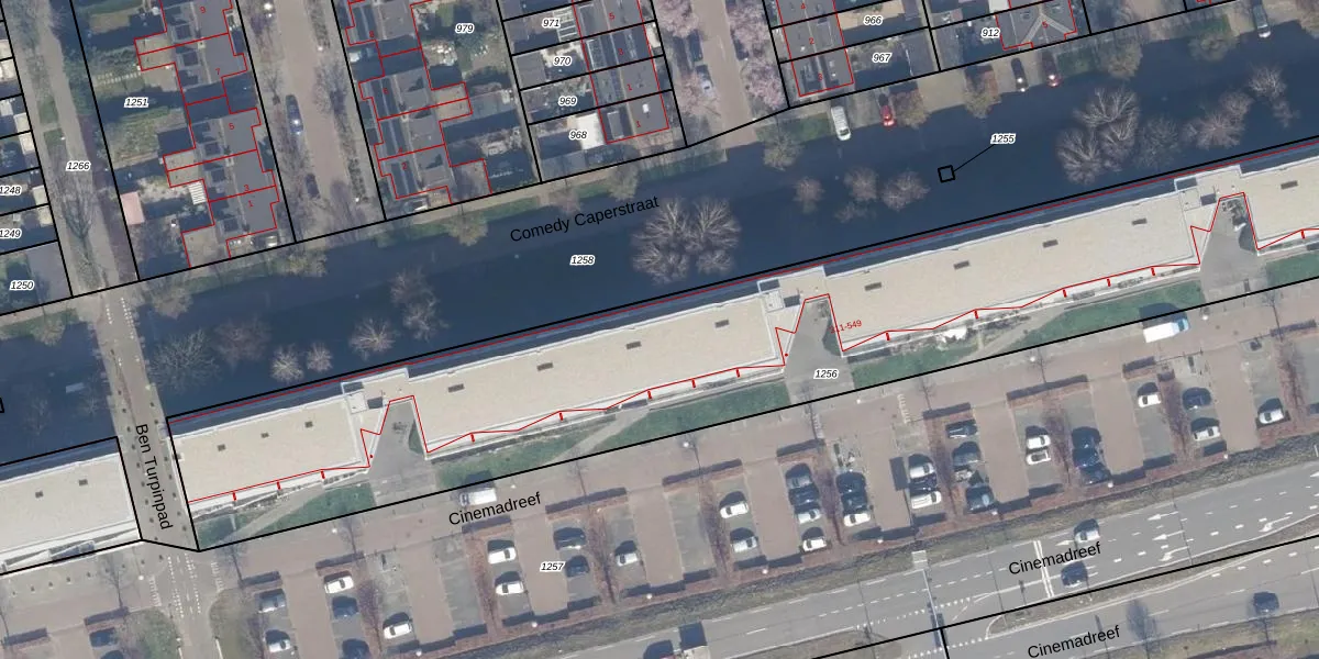 Het perceel waarop Cinemadreef 445 staat heeft een oppervlakte van 4455 m². Dit is een zeer groot perceel. De perceeloppervlakte wordt geregistreerd door het Kadaster. Gedetailleerde informatie over de maten van dit perceel kunt u vinden in het rapport Kadastrale kaart met maatvoering van Cinemadreef 445.