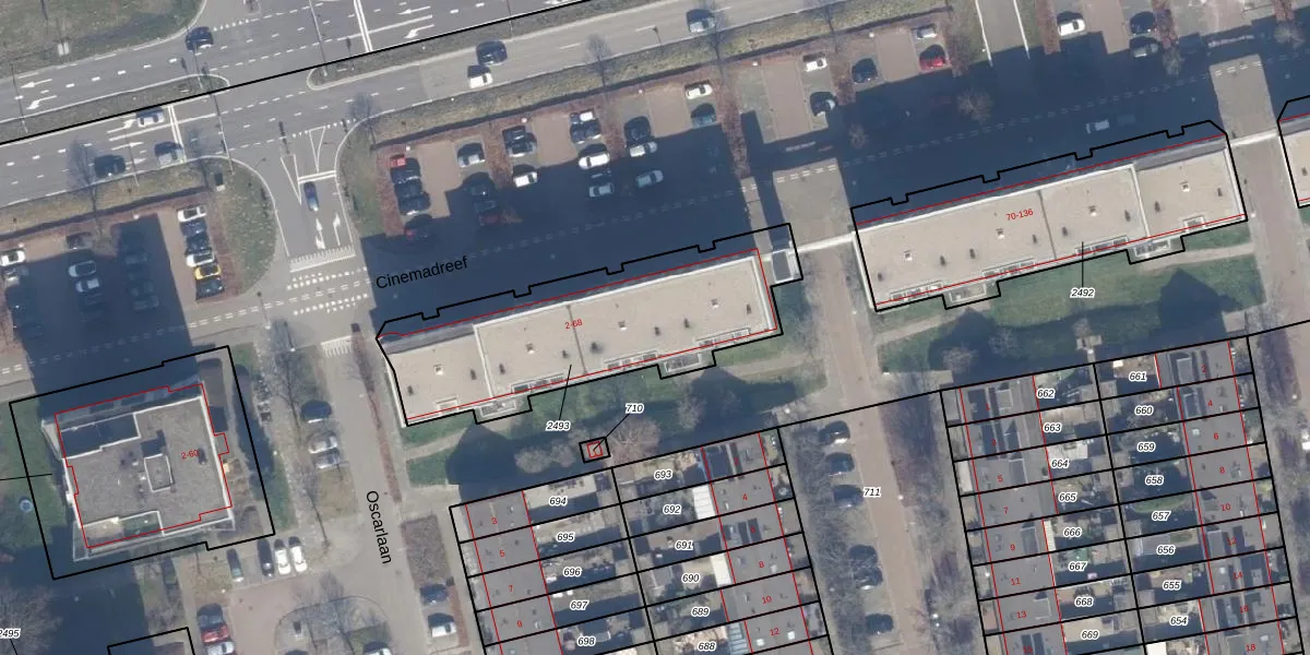 Het perceel waarop Cinemadreef 46 staat heeft een oppervlakte van 1031 m². Dit is een zeer groot perceel. De perceeloppervlakte wordt geregistreerd door het Kadaster. Gedetailleerde informatie over de maten van dit perceel kunt u vinden in het rapport Kadastrale kaart met maatvoering van Cinemadreef 46.