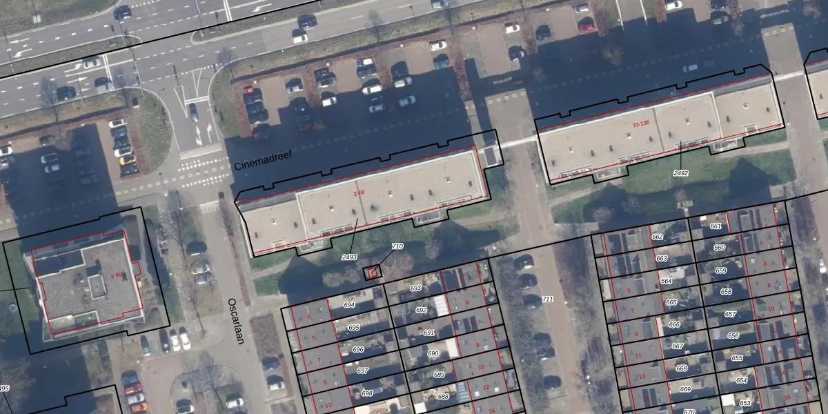 Het perceel waarop Cinemadreef 50 staat heeft een oppervlakte van 1031 m². Dit is een zeer groot perceel. De perceeloppervlakte wordt geregistreerd door het Kadaster. Gedetailleerde informatie over de maten van dit perceel kunt u vinden in het rapport Kadastrale kaart met maatvoering van Cinemadreef 50.