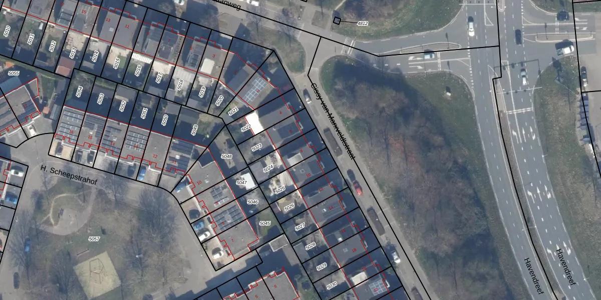 Het adres is gelegen op perceel 5024 in de sectie Q en de kadastrale gemeente Almere. De kadastrale aanduiding is aldus AMR04-Q-5024. De gemiddelde perceelgrootte in Almere is 3327,75 m². Dit perceel is kleiner: de perceeloppervlakte bedraagt 195 m². De grootste perceeloppervlakte in de kadastrale gemeente is 32,12 km². De kleinste oppervlakte bedraagt 0 m². Op het perceel bevinden zich geen andere adressen. De laatste wijziging in het de Basisregistratie Kadaster (BRK) was op 12-11-2003.