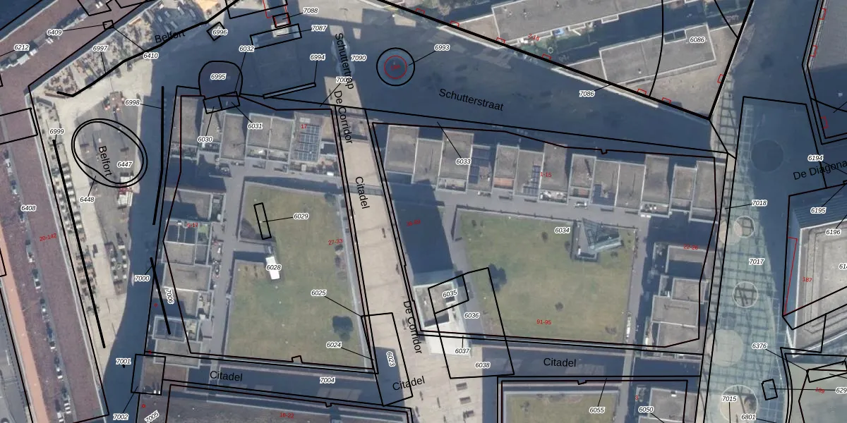 Het perceel waarop Citadel 36 staat heeft een oppervlakte van 3222 m². Dit is een zeer groot perceel. De perceeloppervlakte wordt geregistreerd door het Kadaster. Gedetailleerde informatie over de maten van dit perceel kunt u vinden in het rapport Kadastrale kaart met maatvoering van Citadel 36.