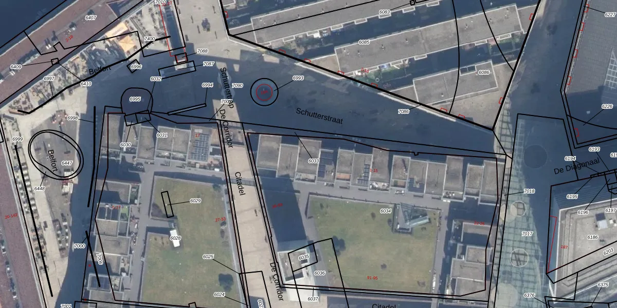 Het perceel waarop Citadel 53 staat heeft een oppervlakte van 3222 m². Dit is een zeer groot perceel. De perceeloppervlakte wordt geregistreerd door het Kadaster. Gedetailleerde informatie over de maten van dit perceel kunt u vinden in het rapport Kadastrale kaart met maatvoering van Citadel 53.