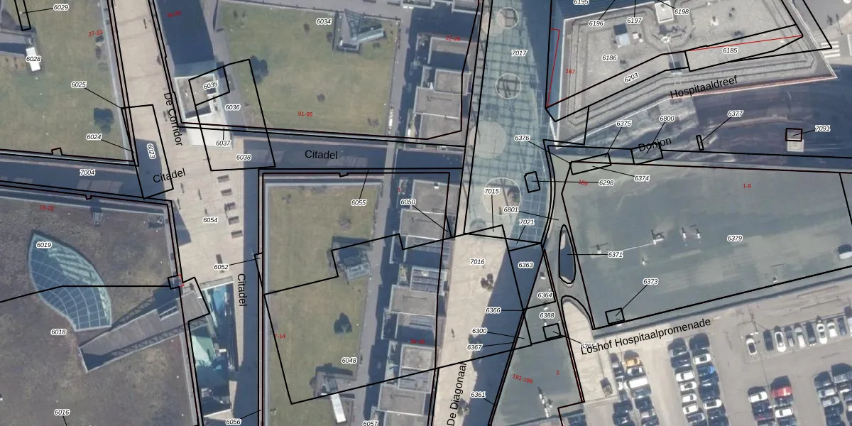 Het perceel waarop Citadel 69 staat heeft een oppervlakte van 2004 m². Dit is een zeer groot perceel. De perceeloppervlakte wordt geregistreerd door het Kadaster. Gedetailleerde informatie over de maten van dit perceel kunt u vinden in het rapport Kadastrale kaart met maatvoering van Citadel 69.