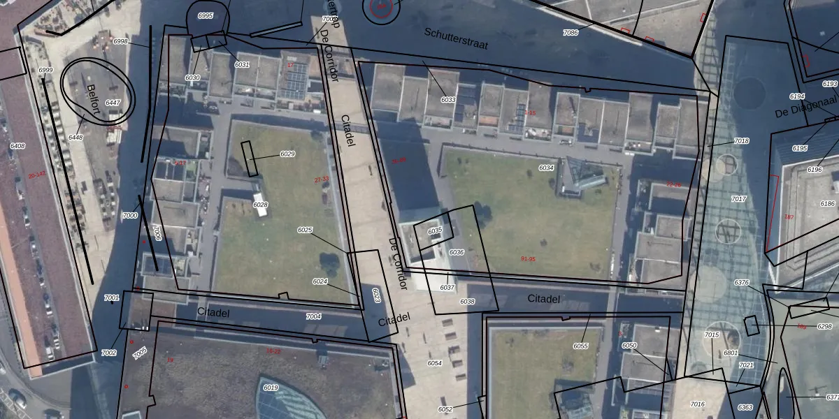 Het perceel waarop Citadel 86 staat heeft een oppervlakte van 3222 m². Dit is een zeer groot perceel. De perceeloppervlakte wordt geregistreerd door het Kadaster. Gedetailleerde informatie over de maten van dit perceel kunt u vinden in het rapport Kadastrale kaart met maatvoering van Citadel 86.