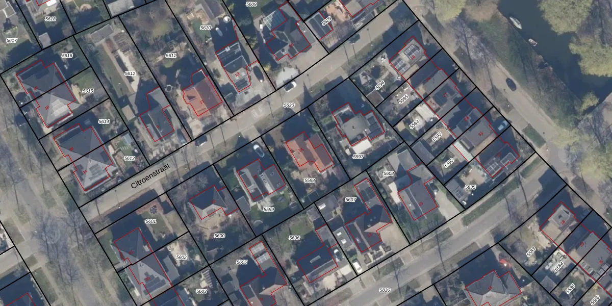 Het perceel waarop Citroenstraat 14 staat heeft een oppervlakte van 498 m². Dit is een groot perceel. De perceeloppervlakte wordt geregistreerd door het Kadaster. Gedetailleerde informatie over de maten van dit perceel kunt u vinden in het rapport Kadastrale kaart met maatvoering van Citroenstraat 14.