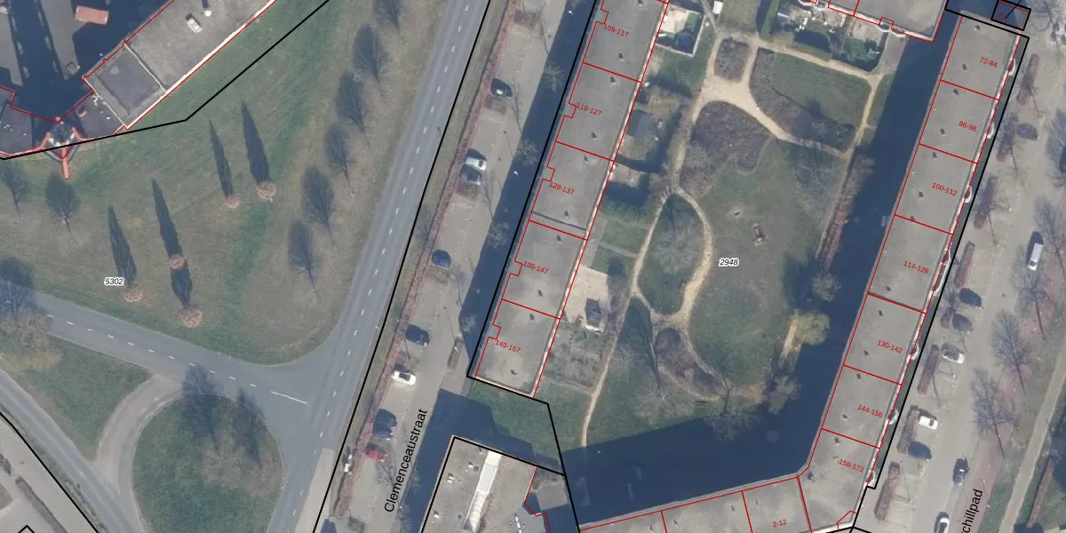 Het perceel waarop Clemenceaustraat 139 staat heeft een oppervlakte van 8761 m². Dit is een zeer groot perceel. De perceeloppervlakte wordt geregistreerd door het Kadaster. Gedetailleerde informatie over de maten van dit perceel kunt u vinden in het rapport Kadastrale kaart met maatvoering van Clemenceaustraat 139.