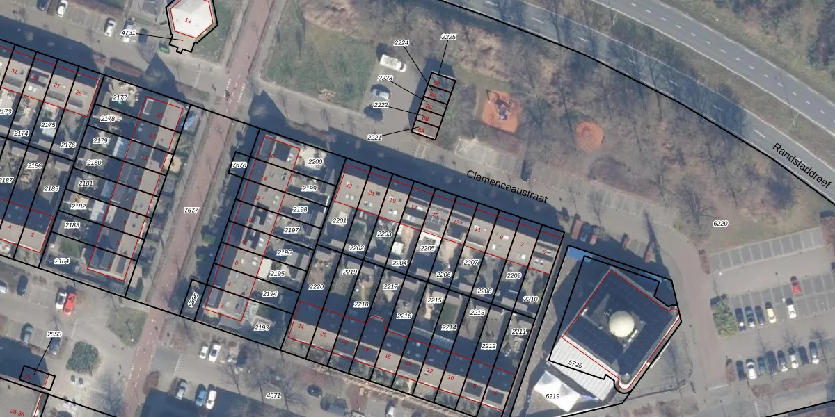 Gebruik de zoekbalk of klik op een perceel voor informatie over de adressen binnen dit perceel.