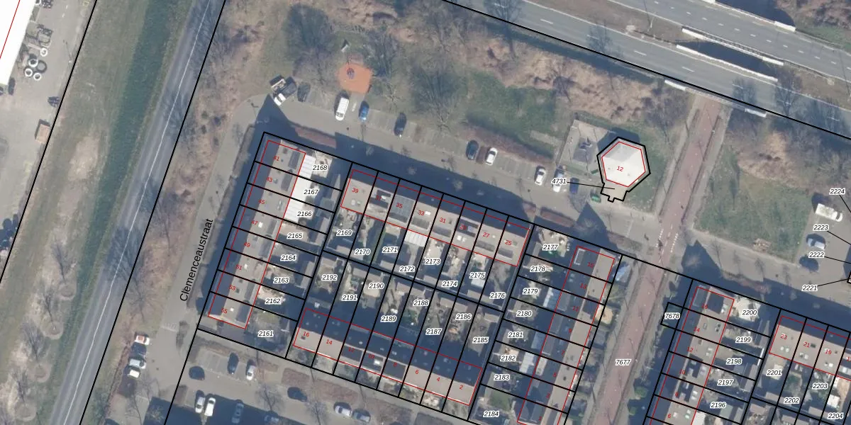 Het perceel waarop Clemenceaustraat 33 staat heeft een oppervlakte van 118 m². Dit is een middelgroot perceel. De perceeloppervlakte wordt geregistreerd door het Kadaster. Gedetailleerde informatie over de maten van dit perceel kunt u vinden in het rapport Kadastrale kaart met maatvoering van Clemenceaustraat 33.