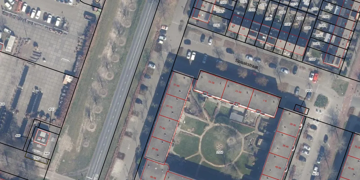 Het perceel waarop Clemenceaustraat 61 staat heeft een oppervlakte van 5451 m². Dit is een zeer groot perceel. De perceeloppervlakte wordt geregistreerd door het Kadaster. Gedetailleerde informatie over de maten van dit perceel kunt u vinden in het rapport Kadastrale kaart met maatvoering van Clemenceaustraat 61.