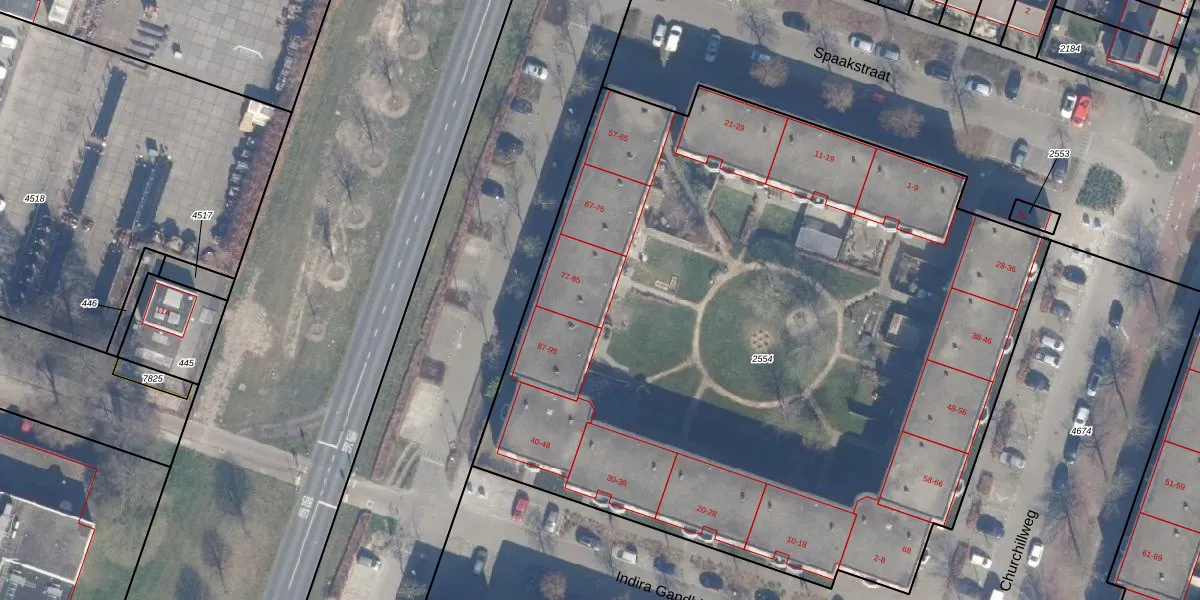 Het perceel waarop Clemenceaustraat 85 staat heeft een oppervlakte van 5451 m². Dit is een zeer groot perceel. De perceeloppervlakte wordt geregistreerd door het Kadaster. Gedetailleerde informatie over de maten van dit perceel kunt u vinden in het rapport Kadastrale kaart met maatvoering van Clemenceaustraat 85.