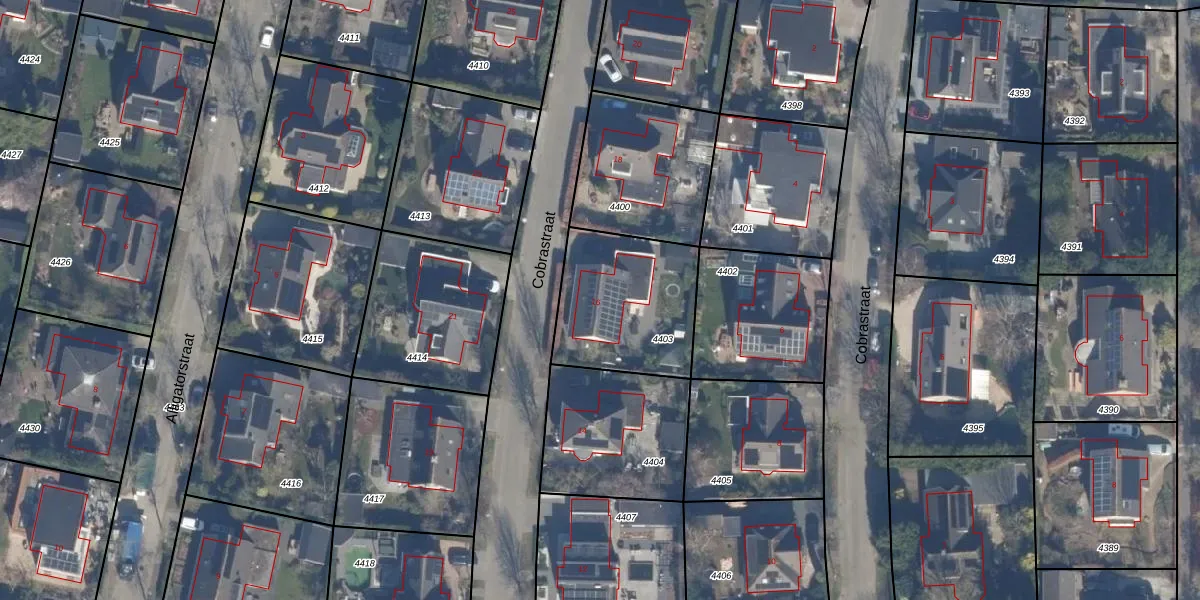 Het perceel waarop Cobrastraat 16 staat heeft een oppervlakte van 513 m². Dit is een groot perceel. De perceeloppervlakte wordt geregistreerd door het Kadaster. Gedetailleerde informatie over de maten van dit perceel kunt u vinden in het rapport Kadastrale kaart met maatvoering van Cobrastraat 16.