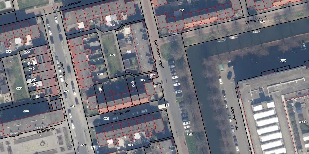 Gebruik de zoekbalk of klik op een perceel voor informatie over de adressen binnen dit perceel.