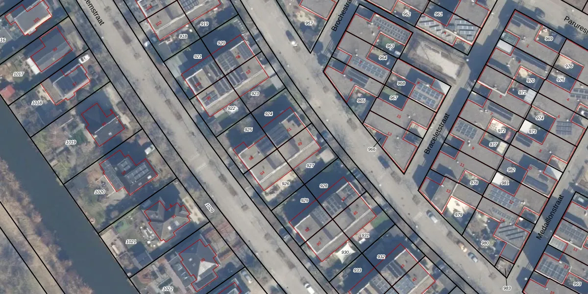 Gebruik de zoekbalk of klik op een perceel voor informatie over de adressen binnen dit perceel.
