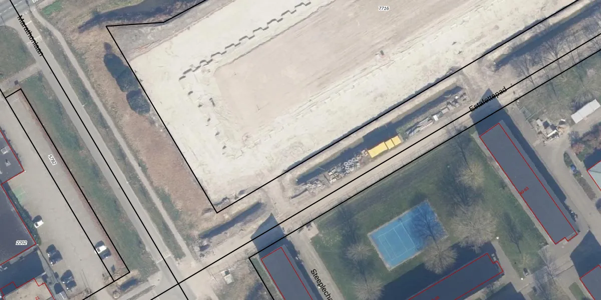 Het adres is gelegen op perceel 7716 in de sectie P en de kadastrale gemeente Almere. De kadastrale aanduiding is aldus AMR04-P-7716. Het perceel is met 1,0 ha relatief groot. Het gemiddelde ligt in de kadastrale gemeente Almere op 3327,71 m². Het grootste perceel in de kadastrale gemeente is 32,12 km². Het kleinste perceel heeft een oppervlakte van 0 m². Er zijn 67 adressen aanwezig op het perceel. De huidige grenzen van het perceel zijn digitaal in de Basisregistratie Kadaster (BRK) geregistreerd op 21-09-2020.