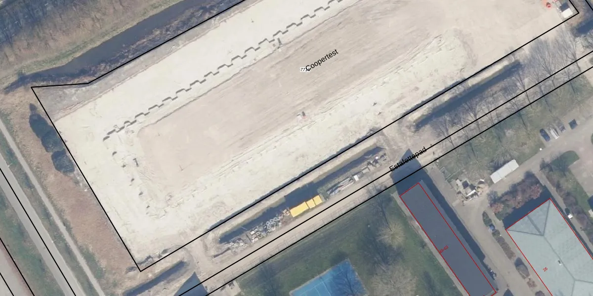 Het perceel waarop Coopertest 43 staat heeft een oppervlakte van 1,0 ha. Dit is een zeer groot perceel. De perceeloppervlakte wordt geregistreerd door het Kadaster. Gedetailleerde informatie over de maten van dit perceel kunt u vinden in het rapport Kadastrale kaart met maatvoering van Coopertest 43.