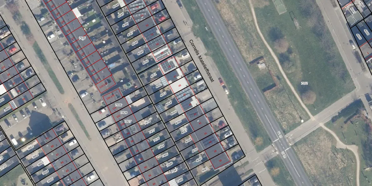 Cornelis Matelieffstraat 45 is gelegen op kadastraal perceel AMR04B4054. Deze kadastrale aanduiding is uniek en wordt gebruikt door het Kadaster om eigendomsrechten en andere zakelijke rechten vast te leggen. Het perceel maakt onderdeel uit van de kadastrale gemeente Almere.