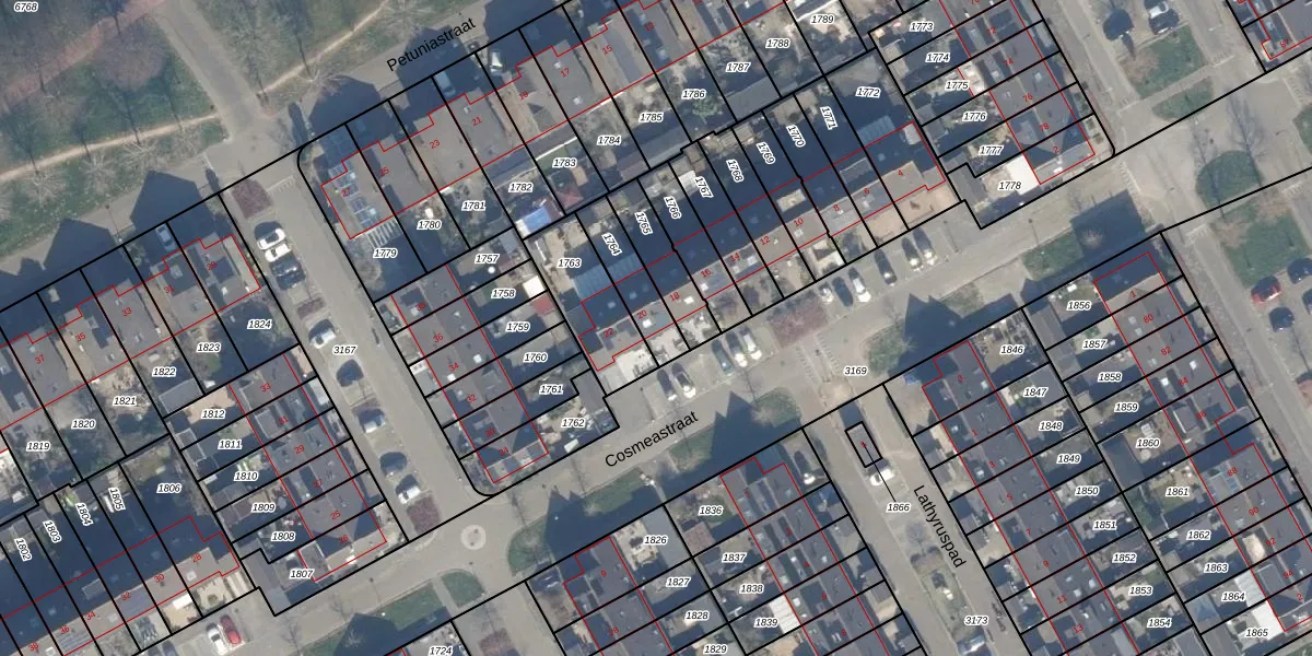 Het perceel waarop Cosmeastraat 20 staat heeft een oppervlakte van 145 m². Dit is een middelgroot perceel. De perceeloppervlakte wordt geregistreerd door het Kadaster. Gedetailleerde informatie over de maten van dit perceel kunt u vinden in het rapport Kadastrale kaart met maatvoering van Cosmeastraat 20.
