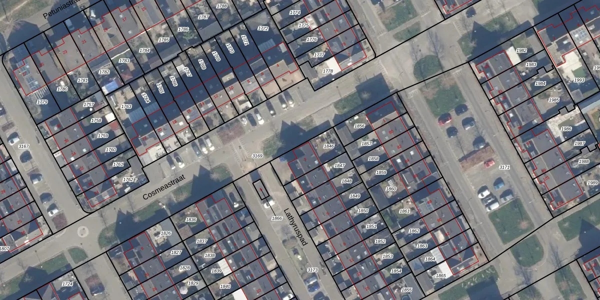 Gebruik de zoekbalk of klik op een perceel voor informatie over de adressen binnen dit perceel.