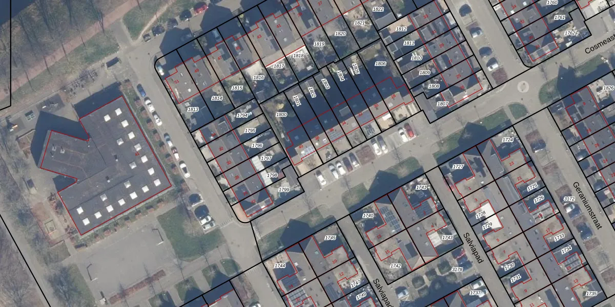 Cosmeastraat 40 is gelegen op kadastraal perceel AMR04N1800. Deze kadastrale aanduiding is uniek en wordt gebruikt door het Kadaster om eigendomsrechten en andere zakelijke rechten vast te leggen. Het perceel maakt onderdeel uit van de kadastrale gemeente Almere.