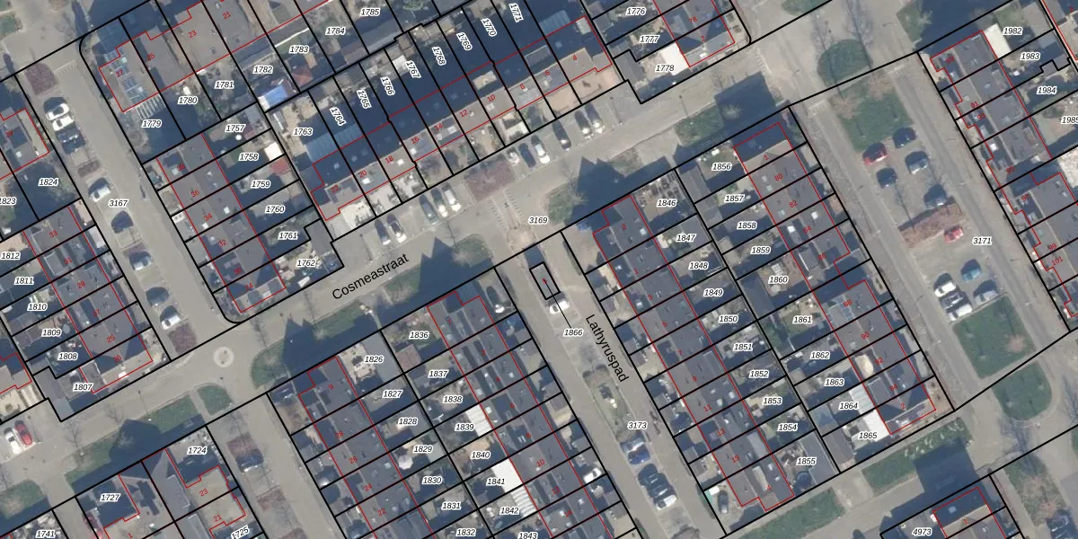 Het perceel waarop Cosmeastraat 5 staat heeft een oppervlakte van 18 m². Dit is een klein perceel. De perceeloppervlakte wordt geregistreerd door het Kadaster. Gedetailleerde informatie over de maten van dit perceel kunt u vinden in het rapport Kadastrale kaart met maatvoering van Cosmeastraat 5.