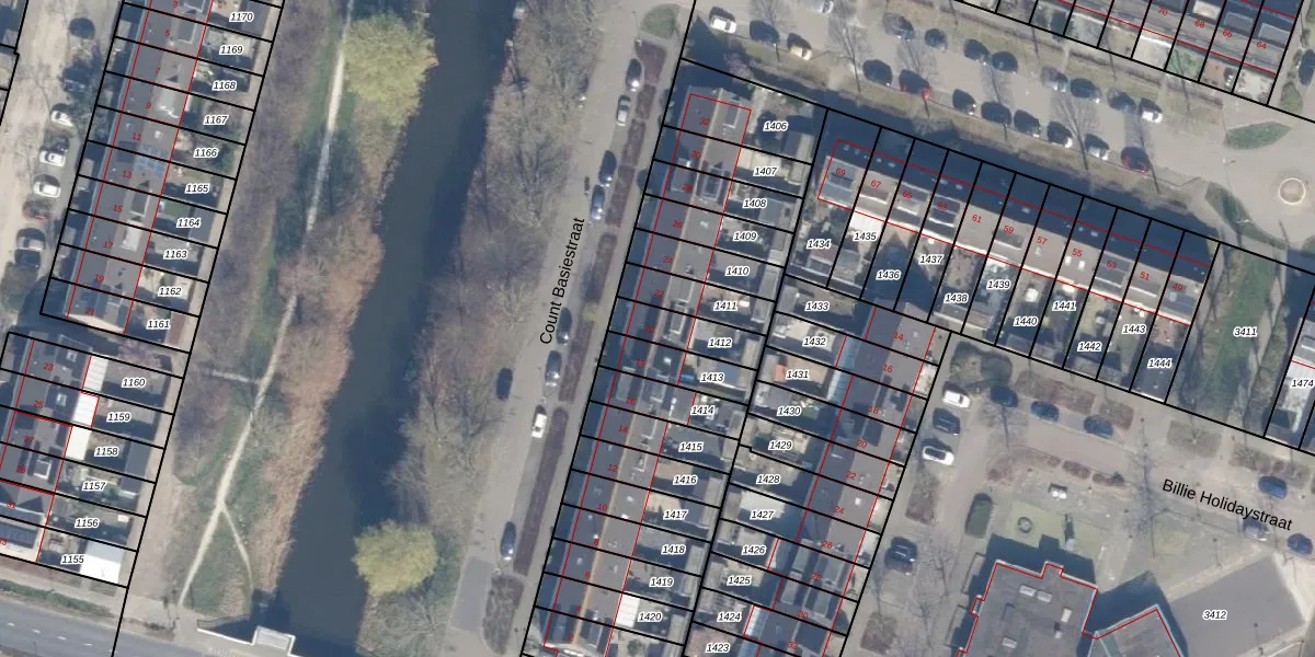 Count Basiestraat 20 is gelegen op kadastraal perceel AMR04Q1412. Deze kadastrale aanduiding is uniek en wordt gebruikt door het Kadaster om eigendomsrechten en andere zakelijke rechten vast te leggen. Het perceel maakt onderdeel uit van de kadastrale gemeente Almere.
