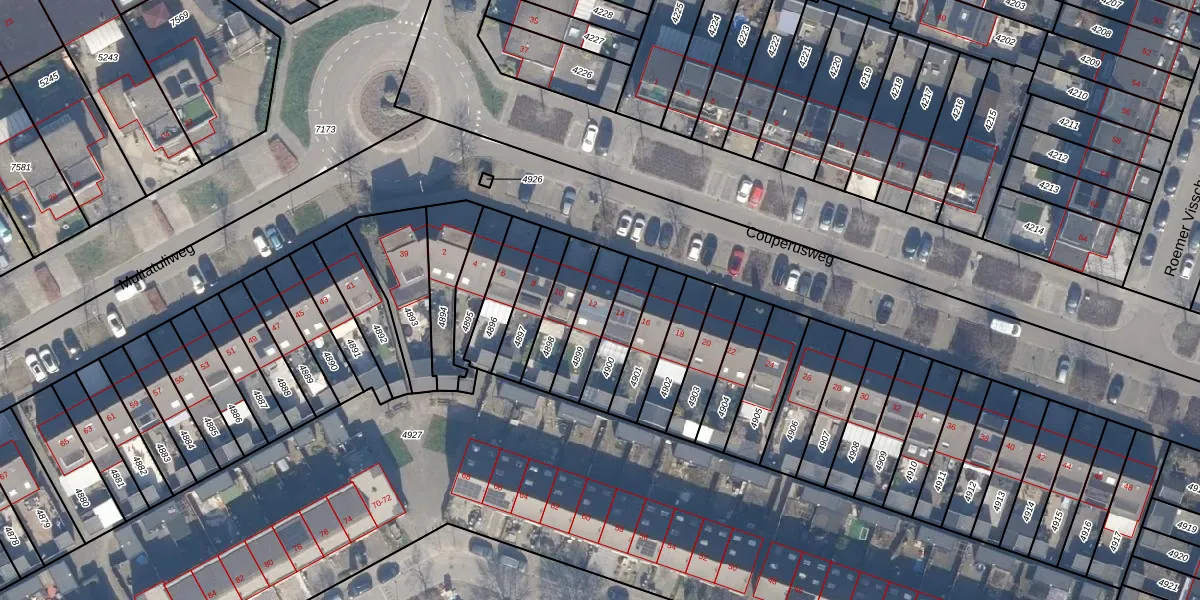 Gebruik de zoekbalk of klik op een perceel voor informatie over de adressen binnen dit perceel.