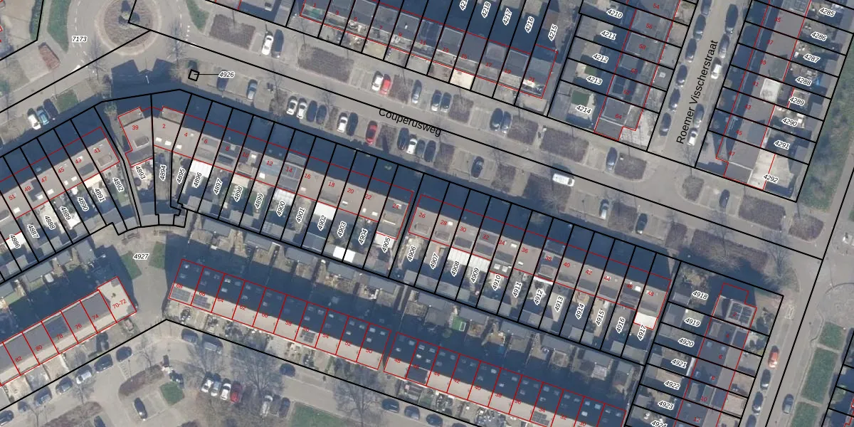 Couperusweg 26 is gelegen op kadastraal perceel AMR04Q4906. Deze kadastrale aanduiding is uniek en wordt gebruikt door het Kadaster om eigendomsrechten en andere zakelijke rechten vast te leggen. Het perceel maakt onderdeel uit van de kadastrale gemeente Almere.