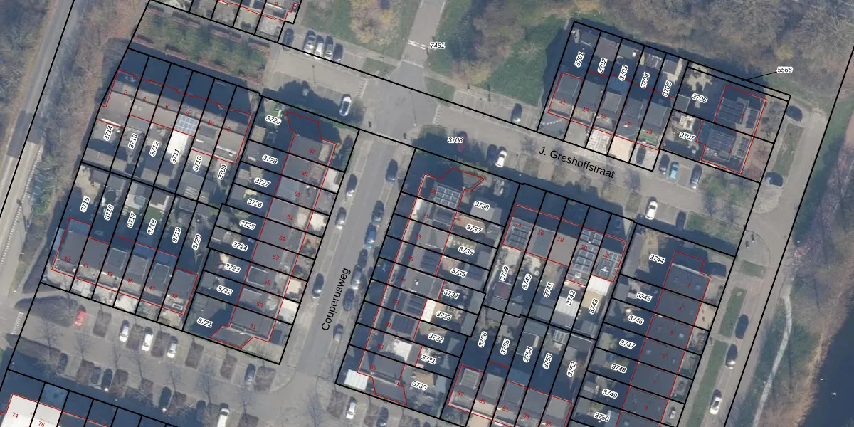 Gebruik de zoekbalk of klik op een perceel voor informatie over de adressen binnen dit perceel.