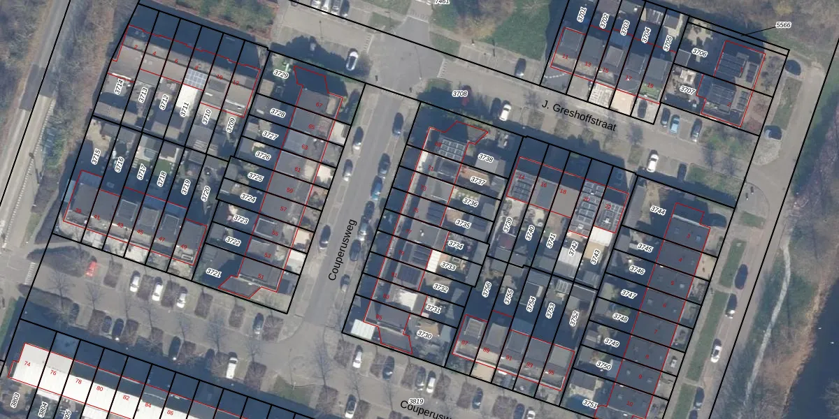 Gebruik de zoekbalk of klik op een perceel voor informatie over de adressen binnen dit perceel.