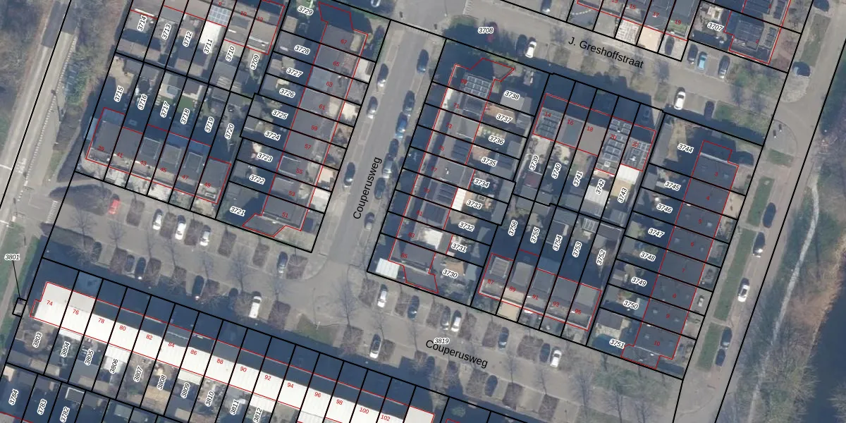 Gebruik de zoekbalk of klik op een perceel voor informatie over de adressen binnen dit perceel.