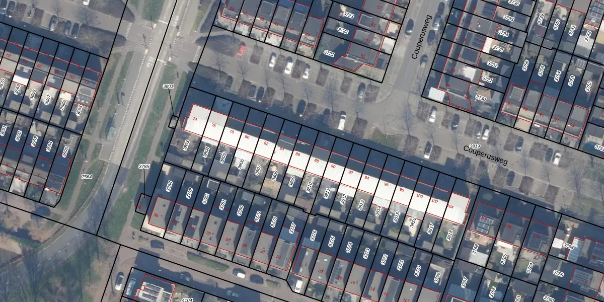 Gebruik de zoekbalk of klik op een perceel voor informatie over de adressen binnen dit perceel.