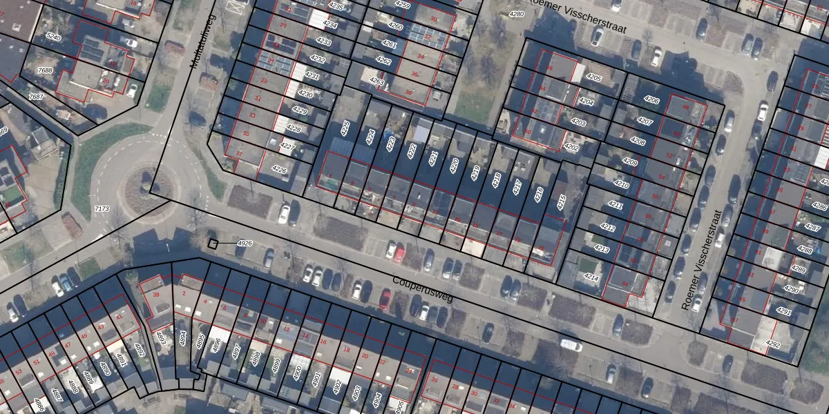 Gebruik de zoekbalk of klik op een perceel voor informatie over de adressen binnen dit perceel.
