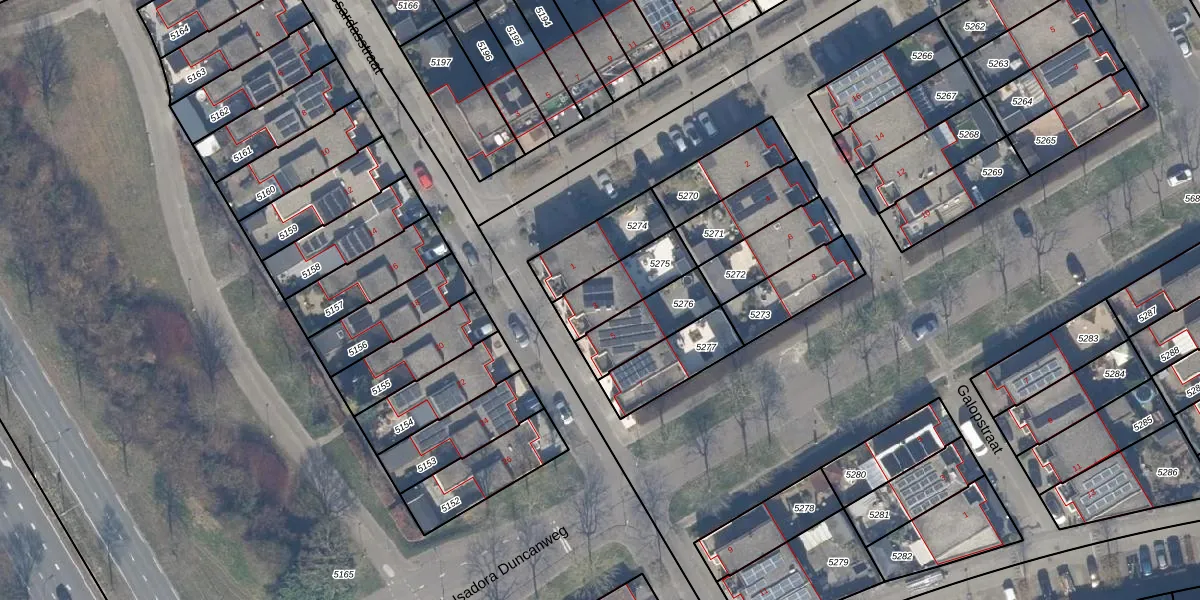 Het adres is gelegen op perceel 5275 in de sectie U en de kadastrale gemeente Almere. De kadastrale aanduiding is aldus AMR04-U-5275. De gemiddelde perceelgrootte in Almere is 3328,46 m². Dit perceel is kleiner: de perceeloppervlakte bedraagt 180 m². Het grootste perceel in de kadastrale gemeente is 32,12 km². Het kleinste perceel heeft een oppervlakte van 0 m². Er zijn geen andere adressen aanwezig op het perceel. In de Basisregistratie Kadaster (BRK) werden de grenzen van het perceel geregistreerd op 14-03-2002.