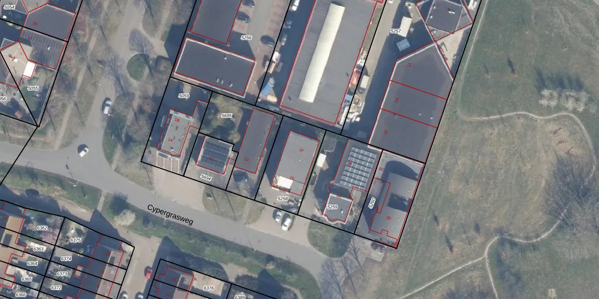 Het perceel waarop Cypergrasweg 1-F staat heeft een oppervlakte van 450 m². Dit is een groot perceel. De perceeloppervlakte wordt geregistreerd door het Kadaster. Gedetailleerde informatie over de maten van dit perceel kunt u vinden in het rapport Kadastrale kaart met maatvoering van Cypergrasweg 1-F.