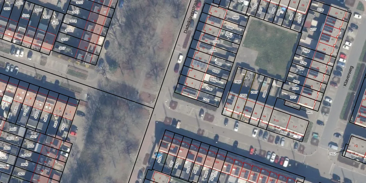 Dadelklaverstraat 2 is gelegen op kadastraal perceel AMR04O7141. Deze kadastrale aanduiding is uniek en wordt gebruikt door het Kadaster om eigendomsrechten en andere zakelijke rechten vast te leggen. Het perceel maakt onderdeel uit van de kadastrale gemeente Almere.